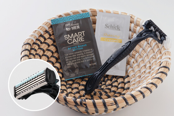 세날면도기와, 있으면 안심한 애프터 셰이빙 로션을 준비.